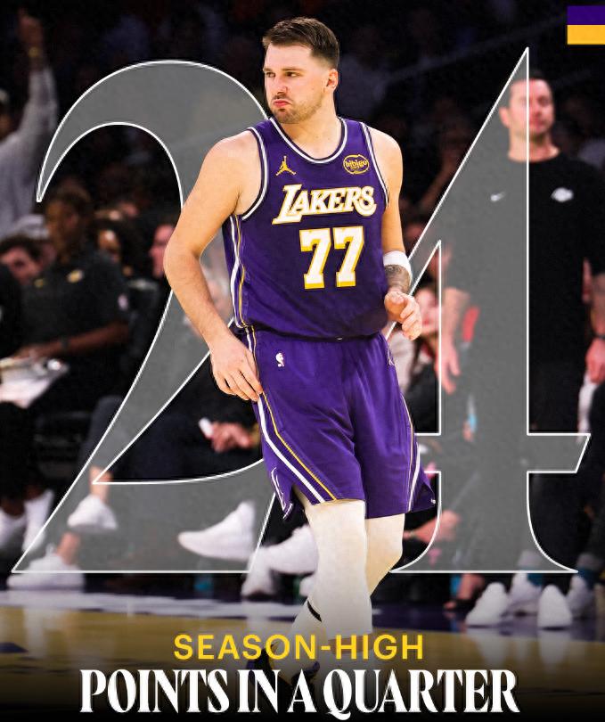 东契奇首节24分创纪录詹姆斯25分 湖人大胜快船锁定淘汰赛资格