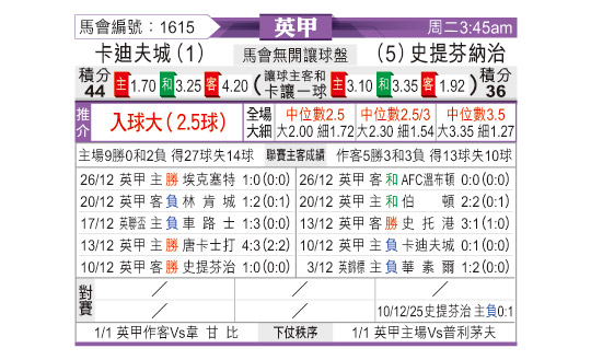 [英甲] 卡迪夫城vs斯蒂文尼奇