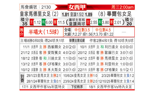 [西女超] 皇家马德里女足vs毕尔巴鄂竞技女足