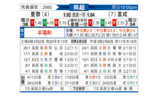[英超] 曼彻斯特联vs富勒姆