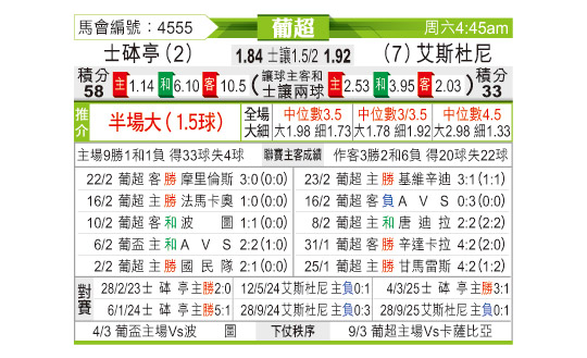 [葡超] 葡萄牙体育vs埃斯托里尔